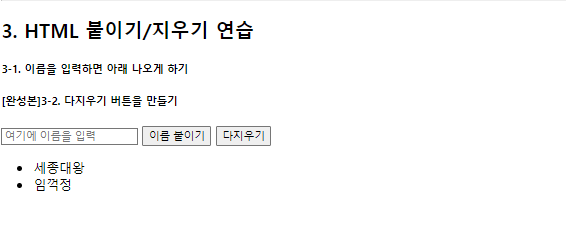 <h2>3. HTML 붙이기/지우기 연습</h2>