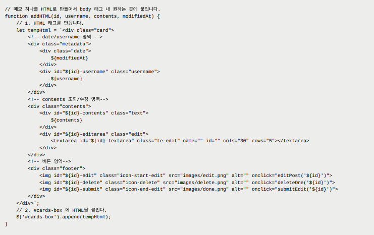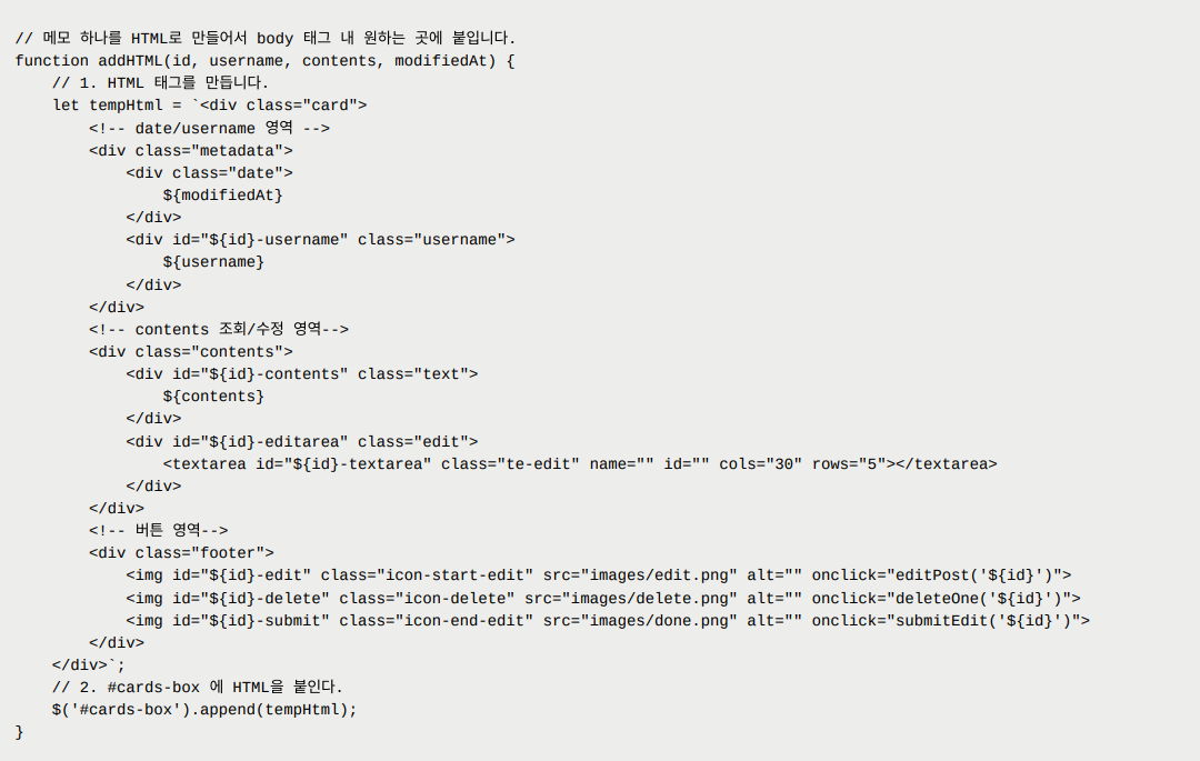 3. 메모마다 HTML 만들고 붙이는 함수 만들기