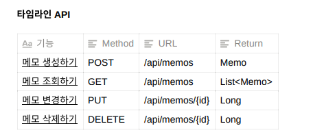 - 2주차 때 배운 내용을 바탕으로 CRUD 기능을 가진 Memo API를 만듭니다.